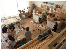 Het Atelier is zodanig ingericht dat zelfstandig werken bevorderd wordt.